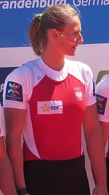 Joanna Leszczyńska (Polish pronunciation: [jɔˈanna lɛʂˈt͡ʂɨj̃ska]; born 18 December 1988 in Warsaw) is a Polish rower.[1] At the 2012 Summer Olympics, she competed in the women's quadruple sculls.[2] She won bronze medal in quadruple sculls at the 2016 Summer Olympics, with Maria Springwald, Agnieszka Kobus and Monika Ciaciuch.[3] That was also the team that won silver at the 2016 European Championships and bronze at the 2015 European Championships on home water in Poznan.[4][5]