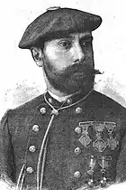 In 1893 Lloréns, one of the leading Levantine Carlists,[46] got elected to the Congress of Deputies from Castellón[47] as one of the first Traditionalist deputies of the Restoration era.[48] In course of his first tenure he actively engaged in defence of regional establishments during gamazada, an attempt on part of the Liberal government to modernise the administration and scrap the 1841 semi-autonomous fiscal Navarrese establishments; he was the only non-Navarrese deputy to vote against the proposal.[49] 12 years later he was rewarded with the title of Navarrese hijo adoptivo in return.[50] In 1896 he successfully ran from the Catalan Gerona and was re-elected from the same constituency in 1898.[51] In 1899 the claimant Carlos VII decided not to field an official list permitting only individual candidatures,[52] but Lloréns was engaged in staging insurgency rather than running for the parliament he just planned to overthrow.[53]