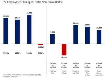 - ↑ Risk, Calculated. "Public and Private Sector Payroll Jobs: Carter, Reagan, Bush, Clinton, Bush, Obama".