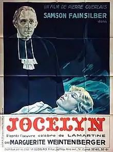 Jocelyn is a 1933 French historical drama film directed by Pierre Guerlais and starring Samson Fainsilber, Marguerite Weintenberger and Octave Berthier.[1] It was remade in 1952. It is based on the 1836 novel of the same title by Alphonse de Lamartine set during the French Revolution.