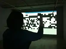 In 1999 they began the practice of modifying old video games such as Wolfenstein 3D to create art mods like SOD.[4] Their efforts were celebrated in the 1999 Webby Awards, where they took top prize in the category of "net art." Jodi used their 5-word acceptance speech (a Webby Award tradition) to criticize the event with the words "Ugly commercial sons of bitches."[5] Further video game modifications soon followed for Quake, Jet Set Willy, and the latest, Max Payne 2 (2006), to create a new set of art games. Jodi's approach to game modification is comparable in many ways to deconstructivism in architecture because they would disassemble the game to its basic parts, and reassemble it in ways that do not make intuitive sense. In one of their more well-known modifications of Quake places, the player inside a closed cube with swirling black-and-white patterns on each side. The pattern is the result of a glitch in the game engine discovered by the artists, presumably, through trial and error; it is generated live as the Quake engine tries, and fails, to visualize the interior of a cube with black-and-white checkered wallpaper.
