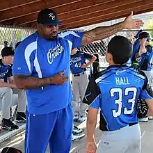 In 2015, Hall was inducted into the California Community Colleges Football Association Hall of Fame.[46] The following year, he was inducted into the Palomar College Athletic Hall of Fame.[1] In 2019, he was hired by his alma mater, Kansas State, to serve as director of football student-athlete development.[45][47] In this position, Hall "creates, develops and implements a student-athlete development program," which "fosters an environment of well-being and achievement."[45] He is also the liaison of the football team to several school support areas, including the athletic trainers, sport psychologists, and strength and conditioning coaches, in addition to the liaison between the Wildcats and university and community organizations.[45]