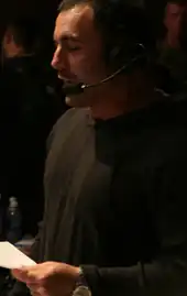 After the UFC was taken over by Zuffa in 2001, Rogan attended some events and became friends with its new president Dana White, who offered him a job as a color commentator. However, Rogan initially declined as he "just wanted to go to the fights and drink".[32][6] In 2002, White was able to hire Rogan for free in exchange for prime event tickets for him and his friends.[31] After about 15 free gigs as a commentator, Rogan accepted pay for the job, working alongside Mike Goldberg until the end of 2016.[6] Rogan won the Wrestling Observer Newsletter Award for Best Television Announcer twice, and was named MMA Personality of the Year four times by the World MMA Awards.[34]