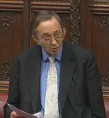 In February 2003 he proposed as a Private Member's Bill the "Assisted Dying for the Terminally Ill Bill",[8] which would legalise physician-assisted dying.[9] After deliberation by a Lords committee, the bill was put forward again in November 2005. On 12 May 2006, the Bill was debated once again in the House of Lords and an amendment to delay its introduction by six months was carried by a margin of 148–100, halting progress of the bill in that session.[10]