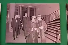 He was professor of Fundamental Theology at the University of Münster from 1963 to 1993,[7] where he developed a Theology after Auschwitz (Holocaust theology).[2] He introduced philosophical and political ideas of 1968, by Ernst Bloch and the Frankfurt School of Max Horkheimer and Theodor W. Adorno, in theology, which was received with opposition. His concepts were applied by the liberation theology in Latin America.[1] He participated in the founding of the University of Bielefeld, and was a leading member of the international Paulus-Gesellschaft dedicated to a dialogue of Christianity and Marxism. After the Second Vatican Council, he was a consultant of the papal secretariate for the noncredentibus from 1968 to 1973.[4] Metz was a consultant of the Würzburg Synod of the German dioceses from 1971 to 1975, and was the principal author of its document "Unsere Hoffnung" (Our hope) which became a key document for the reception of the Second Vatican Council in Germany.[2][3]