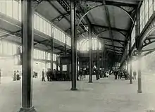 With the increase in passenger numbers, there was need for a new station. In May 1897 the ZAR upgraded Park Halt after they had purchased a steel and glass building from the Netherlands.[4]: 7 The building had been part of the Amsterdam Exhibition, built in 1895 in Rotterdam and designed by architect Jacob Klinkhammer.[4]: 7 [6] Its erection begun in 1896 and was 154m long and 17m wide consisting of offices and passenger facilities with a restaurant.[4]: 7 It was designed with cast iron pillars, ornate olive coloured iron work and a glass domed roof while the offices and restaurant walls were made of carved oak wood.[7]: 65