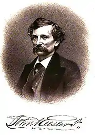 John Adam Ellsler Jr. was born in Harrisburg, Pennsylvania and later moved with his family to Baltimore, Maryland. He first became acquainted with the theatre as a delivery boy for a firm that printed theatrical programs and posters.[1] He later returned to Philadelphia where by 1846 Ellsler was employed as assistant treasurer, property man and bit player at Peale's Museum. The next year he joined William E. Burton's company at the Arch Street Opera House. In 1849 he was one of the seven founding board members of the Actors' Order of Friendship, a benevolent society established in Philadelphia.[2] After three seasons with William E. Burton's company he moved on to New York City to play leading roles at Chatham Theatre. After an engagement at Charleston,. South Carolina, Ellsler became co- manager with Joseph Jefferson on a two-year road tour of the Southern American States. For two seasons in the early 1850s Ellsler managed the Utica Museum, Utica, New York.[3][4][5][6]