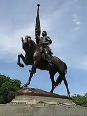 The State of Illinois commissioned an equestrian statue of the general that now stands in Chicago's Grant Park. Another equestrian statue stands in Logan Circle in Washington, D.C., which gives its name to the surrounding neighborhood. At #4 Logan Circle, a former Logan residence, now called John Logan House, displays a variety of exterior and interior plaques to celebrate Logan's achievements as soldier and statesman.[14]