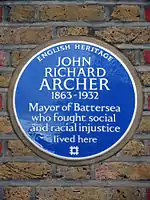 John Richard Archer (8 June 1863 – 14 July 1932) was a British politician and political activist. In 1913 he was elected Mayor of Battersea, becoming the first black mayor of a borough in London. He was a notable Pan-Africanist and the founding president of the African Progress Union.