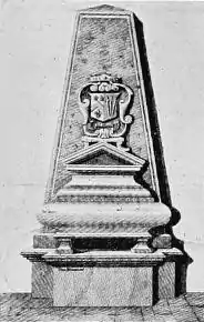 He died on 10 September 1689 and was buried on 14 September 1689 at the church of St Giles in the Fields, London. A monument erected to his memory in the old Church was moved to the churchyard when the present Georgian church was built and subsequently decayed, but the inscribed tablet survives now in the south porch, reading as follows:[9]