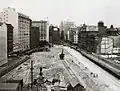 In 1923, the first sod was turned on the city railway.[6] The City Circle was constructed originally as a stub line to St James, via the Town Hall, Wynyard and towards the Harbour Bridge. It was not until 1955 that the loop was completed by the construction of Circular Quay station. A line to the eastern suburbs was eventually built, but along a different alignment to that envisaged by Bradfield, who proposed a line along Oxford Street.