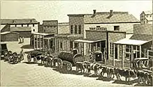 He came to Colorado during the gold rush and arrived on June 27, 1859.[4] When Moore first came to the present-day area of Denver, there were a few cabins in Cherry Creek village, or Denver, and Auraria settlements. The town of Highland was also established. People traveled by wagon train to reach the area. Within a year, the settlements grew and overland coaches regularly provided coach and mail service from the Missouri River area.[7]