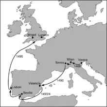 - ↑ "John Cabot in Seville, 1494", The Smugglers' City, Dept. of History, University of Bristol