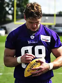 On March 14, 2012, Carlson signed a five-year, $25 million contract with the Minnesota Vikings.[7] In 2013, his contract was restructured, with his base salary reduced from $2.9M to $1.5M, and his workout bonus reduced to $50,000.[8] Paul Allen of KFAN Minnesota once said "the combination of John Carlson and Kyle Rudolph would be the best tight end combination besides Rob Gronkowski and Aaron Hernandez."
