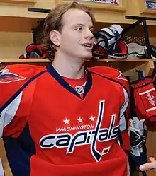 John Carlson (born January 10, 1990) is an American professional ice hockey defenseman and alternate captain for the Washington Capitals of the National Hockey League (NHL). He was drafted by the Capitals in the first round, 27th overall, in the 2008 NHL Entry Draft after playing a year in the United States Hockey League (USHL) with the Indiana Ice. Before reaching the NHL, Carlson played junior hockey in the Ontario Hockey League (OHL) with the London Knights and played professionally with the Capitals' American Hockey League (AHL) affiliate, the Hershey Bears. He also participated internationally for the United States in the 2010 World Juniors and 2014 Winter Olympics. Carlson won the Stanley Cup as a member of the Capitals in 2018, as the highest scoring defenseman during the playoffs.