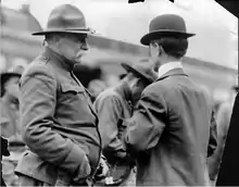 From April 1909 to March 1916, Chase was the adjutant general of the State of Colorado. When labor unrest returned to the Colorado mines in 1913 and 1914, Chase led Colorado National Guard forces in occupation of the strike areas. He imposed martial law, deported strikers from the state, and enlisted mine guards into the National Guard.[13] When the labor leader known as "Mother Jones" came to Colorado to support the striking workers, Chase initially arrested her and put her on a train heading out of the area with a warning not to return. When she returned to the area, Chase detained her for two months under armed guard at a local hospital and refused to allow her to be seen by visitors or a doctor. The detention of Mother Jones led to demonstrations, including one in which a hundred women surrounded Chase, demanding her release. Chase reportedly ordered his men to "ride down the women," and six of the women were injured in the incident.[14] Jones later said of Chase, "His veins run with ice water."[15]