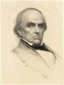 During the early years of his political career Davis was on good terms with Daniel Webster, who was highly influential in party politics both at the state and national levels, and to whom he looked up.[16] However, in the late 1830s Davis and other Massachusetts Whigs (notably Abbott Lawrence) came to believe that Webster lacked broad-based national support to successfully contend with Henry Clay and William Henry Harrison after his weak showing in the 1836 Whig convention.[17] This introduced a rift between Webster and Davis that deepened in 1838 when the two split on western land policies.[18] The split between Davis and Webster became permanent after Webster harshly criticized Lawrence in an 1842 speech celebrating his successful negotiation of the Webster-Ashburton Treaty with Great Britain, which resolved (among other matters) the northeast boundary.[19][20]