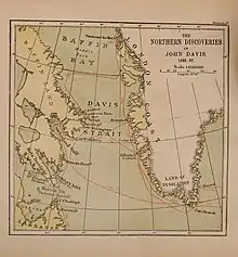 Map showing Davis's northern voyages. From A life of John Davis, the navigator[3]