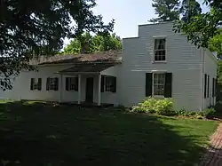 The John Deere House was built in 1836 when Deere arrived in Grand Detour and the building was added onto as his family grew. It is furnished with period furniture and household objects that would have been common around the time the Deere family occupied the home. The house has two levels with four rooms on the main level and two rooms upstairs. Each of the upstairs rooms is accessible via a private staircase and it is believed one of the rooms was used by Deere's apprentices while the other was used as a children's bedroom.[1]