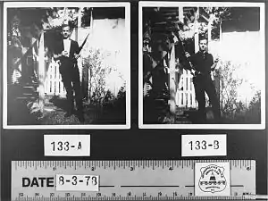 - ↑ Photograph Authentication: The Oswald Backyard Photographs Archived 2009-04-23 at the Wayback Machine, HSCA Appendix, vol. 6, p. 141.