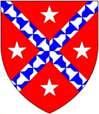 - ↑ Arms of Hill of Houndstone, Somerset (Dorset?): Gules, a saltire vair between four mullets pierced argent