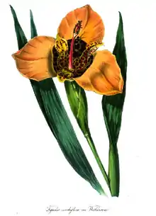 Tigridia conchiflora var. 'Watkinsoni', a lily first hybridised by John Horsefield