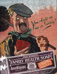 The affordable soaps produced by John Knight & Sons helped to prevent disease and keep citizens healthy. The soap company promoted hand washing via print publications and postcards. Their public messaging of cleanliness was especially important during wars and disease epidemics. The anti-bacterial soap was distributed to soldiers and POWs during the wars.[5]
