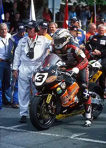 John Warren McGuinness MBE (16 April 1972[2]) is an English motorcycle road racer best known for being a specialist at the Isle of Man TT where he holds 23 wins and sits 3rd in the all time win list behind Michael Dunlop & Joey Dunlop. He and Mike Hailwood hold the record for the most amount of Senior TT wins, 7.