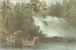 After the Koksoak cleared of ice on 25 June 1839,[39] McLean travelled up Ungava Bay to the George River, which they followed despite its low water[39] until its head of navigation. They then passed overland to where Erlandson had established Fort Nascopie[40] on Petitsikapau Lake.[1] Attempting to complete the route without Innu guides, they got lost[29] and reached the upper Churchill,[1] discovering the Grand Falls (now Churchill Falls).[41][3] McLean considered it "stupendous" and "one of the grandest spectacles in the world",[42] although a hydroelectric project subsequently almost eliminated its flow after 1970. Compelled to return, they reached Fort Chimo on 20 September.[1]