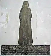 - ↑ For description of monument and transcript of inscription see: Collectanea Topographica Et Genealogica, Volume 5 edited by Frederic Madden, Bulkeley Bandinel, John Gough Nichols, pp.21–24 . For images see: