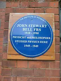 • There is a blue plaque commemorating John Stewart Bell in Queen's university main campus