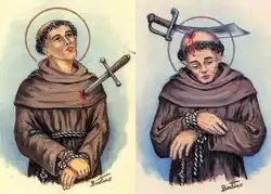 John of Perugia and Peter of Sassoferrato, were both Franciscan friars, who in 1216, were sent by St. Francis, to preach and convert the Moors, at Teruel and Valencia.[1] Both of them would go on to suffer martyrdom in 1231, at Valencia.