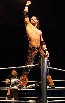 On April 15, Morrison was drafted to the SmackDown brand as part of the 2009 Supplemental Draft.[88] On the April 17 episode of SmackDown, he defeated R-Truth.[89] On the May 1 episode of SmackDown, Morrison engaged in a backstage fight with Chris Jericho after Jericho slapped him, turning face in the process for the first time in his career.[90] Later that same night, Morrison defeated Shelton Benjamin, beginning a feud between the two. On the May 7 episode of Superstars, Morrison lost a match to Jericho after a distraction by Benjamin.[91] Morrison continued to score victories over Benjamin in singles and tag team matches before defeating him on May 17 at Judgment Day.[92] During this time, Morrison would soon become wildly popular with fans. On the June 16 episode of SmackDown, Morrison lost a critically acclaimed match against Edge, in which the commentators described it as a "third main event". On the July 31 episode of SmackDown, Morrison had his first World Heavyweight Championship match against Jeff Hardy, but failed to win the title.[93]