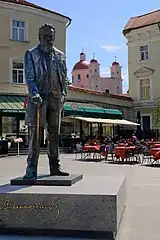 In May 1920, Basanavičius together with Mykolas Biržiška, Kristupas Čibiras, and Teofilius Juodvalkis traveled to Kaunas to attend the opening of the Constituent Assembly of Lithuania.[19] Basanavičius was greeted as an honored guest and met with many dignitaries and old friends. He also visited the native Ožkabaliai before returning to Vilnius in early June.[20] A month later, in July 1920, the city was captured by the Soviet Union and it was transferred to the Lithuanians according to the Soviet–Lithuanian Peace Treaty. But Poland recaptured the city in October 1920 during the staged Żeligowski's Mutiny.[21] Polish authorities limited the membership in the Lithuanian Scientific Society only to the residents of Poland.[22] Polish censorship and restrictions caused great anxiety to Basanavičius who feared that he might get arrested.[23] His refusal to leave the city became a living symbol of the Lithuanian claims to the city.[24] In July–November 1924, Basanavičius again visited Lithuania and received a hero's welcome.[25] On 23 November, a day-long celebration with a special mass, concerts, and lectures for his 75th birthday was held in Kaunas.[26]