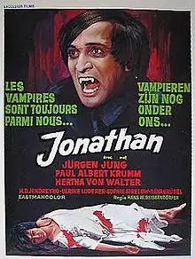 Jonathan is a 1970 West German vampire horror film directed by Hans W. Geißendörfer. The film stars Jürgen Jung, Hans-Dieter Jendreyko, Paul Albert Krumm, Hertha von Walther and Oskar von Schab. The film takes place in the 19th century where vampires who are immune to sunlight have taken over the world. Human rebels band together for a battle of life and the control of civilization.[1]