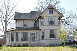 The Jones House is a historic house at 220 Bush Street in Sulphur Springs, Benton County, Arkansas. It is a 2+12-story wood-frame structure with a T shape and cross-gable roof. The front facade, one of the ends of the crosspiece of the T, has beveled corners with the roof overhanging above the second floor, an Eastlake element. A porch wraps around the stem of the T, which extends to the south. It is supported by turned columns and features a spindled frieze. Built c. 1896, it is a fine and well-preserved example of Eastlake-style architecture.[2]