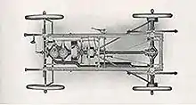 An overhead image of the 1908 Jonz Model A chassis as built by the Jonz Automobile Co. of Beatrice, Nebraska