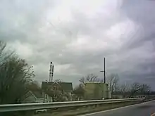 Jordan Point today seen from the approach to the Benjamin Harrison Memorial Bridge; visible are the skeleton lighthouse tower and keeper's dwelling of the former Jordan Point Lighthouse.