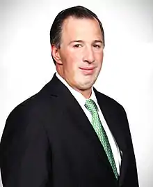 José Antonio Meade Kuribreña (Spanish pronunciation: [xoˌse anˈtonjo ˈmið kuɾiˈβɾeɲa]; born 27 February 1969)[1] is a Mexican politician, economist, lawyer, and diplomat. He served as a cabinet minister under Presidents Felipe Calderón and Enrique Peña Nieto in a variety of portfolios, becoming the first Mexican official appointed to cabinet five times. He was the Institutional Revolutionary Party (PRI) candidate in the 2018 presidential election, where he placed third.