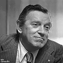 Gelbard became involved in business politics, becoming a leader in the Chamber of Commerce in Catamarca.[2] He represented the small and medium business sectors, many of whose owners were immigrants and new businessmen. He came to believe that the millions of small industries and merchants needed to unite to become a force that could negotiate with Perón's pro-labor forces. He became the "national bourgeoisie's" principal ideologue, and "the most articulate advocate of an alliance between business, the state and labor, behind a federalist and nationalist economic program."[3]
