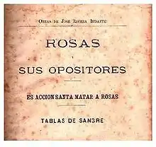 José Rivera Indarte (1814 in Córdoba – 1845 in Santa Catarina) was an Argentine poet and journalist. He was at times both a supporter and critic of Juan Manuel de Rosas, writing first the "Anthem of the Restorers" and later the "Blood tables".