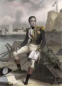 In 1804 he was sent as ambassador from Spain to France having previously given up the command of the Squadron at Brest to Don Federico Gravina in 1801. His frank bearing and firmness of character were little agreeable to the First consul, who required more flexibility in the agents employed by other powers, with greater deference to his own views and pretensions.[10] It was imperative upon the Spanish court to conciliate the rising power of Napoleon, and Mazarredo soon heard of his recall. Mazarredo had greatly displeased Napoleon by his outspokenness and lack of flexibility, thus he was dismissed to soothe the angry Napoleon, and the subordination of Spanish interest to those of France was complete.[10]