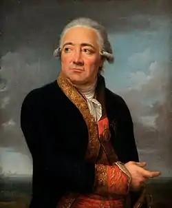 Mazarredo achieved his greatest military success as Cordova's chief of staff.[3] Thanks to his proposal of a bold manoeuvre, which his colleagues considered reckless,[3] Cordova's fleet of 31 ships of the line and 6 frigates overcame a British convoy of 63 merchant ships escorted by a ship of the line and 2 frigates in the action of 9 August 1780. 55 British merchant ships were captured, including 5 East Indiamen. Among the cargo captured were 80,000 muskets, numerous artillery pieces, 300 barrels of gunpowder, more than £1,000,000 in gold and silver, equivalent to £141,000,000 in 2021, and uniforms for more than a dozen regiments. This shipment would have allowed the English to triple the size of their army, going from a ratio of troops of 1 to 1 between independentists from the Thirteen Colonies and the English to a ratio of 3 to 1 in favor of England, which would have meant a fact decisive in the war that would almost certainly have caused the victory of the British power. 3,000 soldiers and sailors were also captured.[4][5] Two years later he took part in the indecisive Battle of Cape Spartel. At the end of the American Revolutionary War he was sent to Algiers as ambassador, in order to negotiate peace after the Spanish bombardments of Algiers.