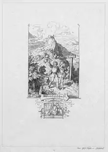 Eichendorff shared Schlegel's view that the world was a naturally and eternally "self-forming artwork",[48] Eichendorff himself used the metaphor that "nature [was] a great picture book, which the good Lord has pitched for us outside."[49] Arnim's and Brentano's studies and interpretations of the Volkslied (folk song) deeply influenced Eichendorff's own poetry and poetology.[50]