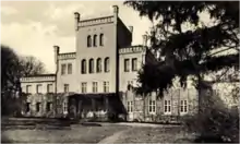 Eichendorff, a descendant of an old noble family, was born in 1788 at Schloß Lubowitz near Ratibor (now Racibórz, Poland) in Upper Silesia, at that time part of the Kingdom of Prussia. His parents were the Prussian officer Adolf Freiherr von Eichendorff (1756–1818) and his wife, Karoline née Freiin von Kloche (1766–1822), who came from an aristocratic Roman Catholic family.[10] Eichendorff sold the family estates in Deutsch-Krawarn, Kauthen, and Wrbkau and acquired Lubowitz Castle from his mother-in-law. The castle's Rococo reconstruction, which was begun by her, was very expensive and almost bankrupted the family.[11] Young Joseph was close to his older brother Wilhelm (1786–1849). From 1793 to 1801, they were home-schooled by tutor Bernhard Heinke. Joseph began writing diaries as early as 1798, witnesses to his budding literary career.[12] The diaries present many insights into the development of the young writer, ranging from simple statements about the weather to notes about finances to early poems. At a young age, Eichendorff was already well aware of his parents' financial straits. On 19 June 1801, the thirteen-year old noted in his diary: "Father travelled to Breslau, on the run from his creditors," adding on 24 June, "mom become terribly faint."[13] With his brother Wilhelm, Joseph attended the Catholic Matthias Gymnasium in Breslau (1801–1804). While previously preferring chapbooks, he was now introduced to the poetry of Matthias Claudius and Voltaire's La Henriade, an epic poem about the last part of the wars of religion and Henry IV of France in ten songs. In 1804 his sister Luise Antonie Nepomucene Johanna was born (died 1883), who was to become a friend of Austrian writer Adalbert Stifter. After their final exams, both brothers attended lectures at the University of Breslau and the Protestant Maria-Magdalena-Gymnasium. Eichendorff's diary from this time shows that he valued formal education much less than the theatre, recording 126 plays and concerts visited. His love for Mozart also goes back to these days.[14] Joseph himself seems to have been a talented actor and his brother Wilhelm a good singer and guitar player.[15]