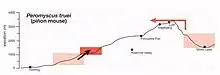 The Yosemite resurvey documented shifts in the geographic ranges of some mammals. The majority of change is to higher elevation by a ratio of 2.5 to 1.[35] A notable alteration in range is shown by the pinyon mouse (Peromyscus truei), where both the upper and lower range limits have moved upward in elevation. The resurvey biologists documented the pinyon mouse on Mount Lyell at elevation 10,500 feet.[35] In Grinnell's Animal Life of the Yosemite, the pinyon mouse (or big-eared white-footed mouse) is described as occurring in the Upper Sonoran Zone on the west slopes of the Sierra Nevada Mountains.