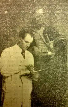 ![]() Josip Horvat Međimurec in front of his picture "King Tomislav at throne", newspaper photography from February 1941. | |