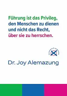 - ↑ Germany, Stuttgarter Zeitung, Stuttgart. "Joy Alemazung über Flucht und Fairer Handel: "Niemand will seinen Heimatort verlassen"". stuttgarter-zeitung.de (in German). Retrieved 2023-06-22.