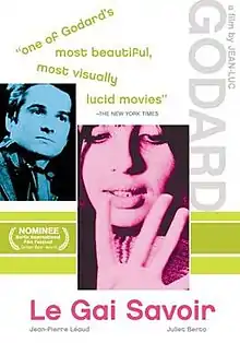 Joy of Learning (French: Le Gai savoir) is a 1969 film by Jean-Luc Godard.[1] The shooting started before the events of May 68 and was finished shortly afterwards. Coproduced by the O.R.T.F., the film was upon completion rejected by French national television, then released in the cinema where it was subsequently banned by the French government. The film is an adaptation of Emile, or On Education, Jean-Jacques Rousseau's treatise on education,[2] and its title is a reference to Nietzsche's The Gay Science.[3] The film was entered into the 19th Berlin International Film Festival.[4]