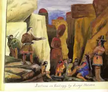 In his essay "Gravers False and True: Blood Meridian as Gnostic Tragedy", literature professor Leo Daugherty argued that McCarthy's Holden is—or at least embodies—a gnostic archon (a kind of demon).[12] Harold Bloom, who declared Judge Holden to be "the most frightening figure in all of American literature",[13] even came to regard him as immortal.[14] However, unlike Daugherty, Bloom argues that Holden defies identification as being under any "system" such as Gnosticism, citing the passage in the book stating that there was no "system by which to divide [him] back into his origins".[15] Rather, Bloom "resort[s]" to literary comparison with Shakespeare's Iago, a methodical dispenser of strife.[16] Cody Todd has written of Holden representing a radically figurative notion of evil who stakes a claim against the natural order of the universe.[17]